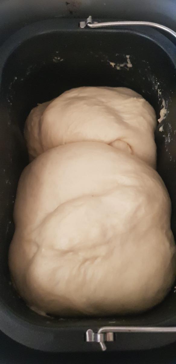Primer levado Una vez tengamos la masa lisa, dejamos levar, dentro de un tuper o bol, que no sea de cristal. Tapamos con papel fil o un paño y lo dejamos en una parte de la casa cálida, alejada de corrientes de aire. La podéis dejar dentro del horno, con el horno apagado, así estará resguardada. Como mínimo Una hora y media, o hasta que duplique su volumen. En mi caso la dejo en la panificadora hasta que termine el programa.