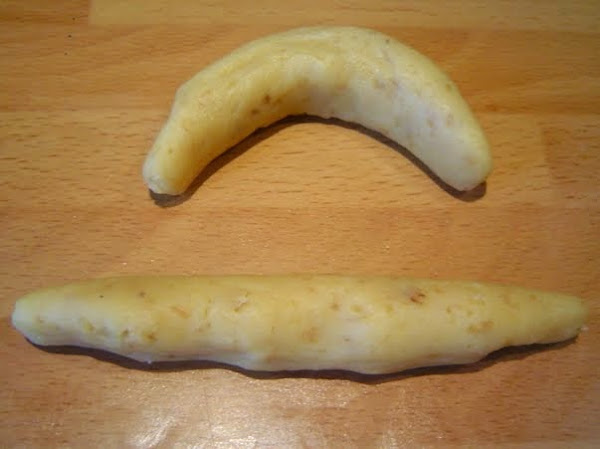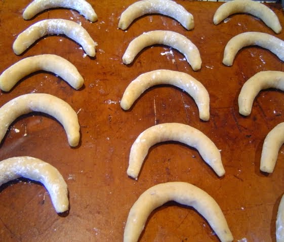 De cada loncha hacemos una bola y de ahí la enrollamos para hacer las media lunas.