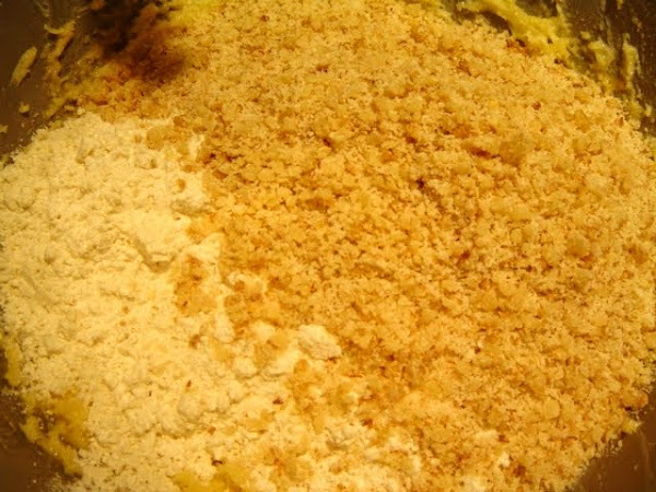 Añadimos la harina y las nueces y mezclamos para que se forme una masa.