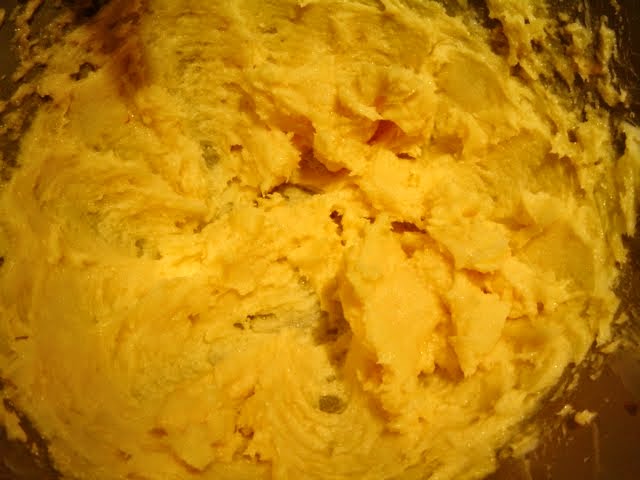 En un bol batimos la mantequilla con el restante de azúcar glass,