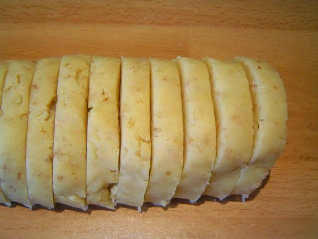 Cuando la masa esté firme, la cortamos en lonchas finas.