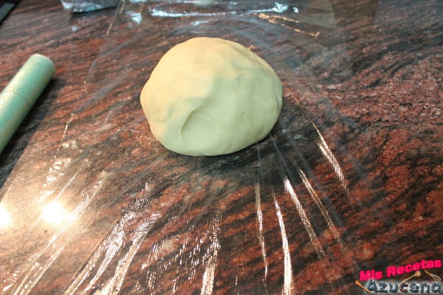 Una vez pasados los 40 minutos por la masa la sacaremos del frigorífico, pondremos un papel vegetal y encima de este pondremos la masa para estirarla con ayuda de un rodillo, es una masa blanda, la dejaremos de un grosor de medio centímetro o poco más.