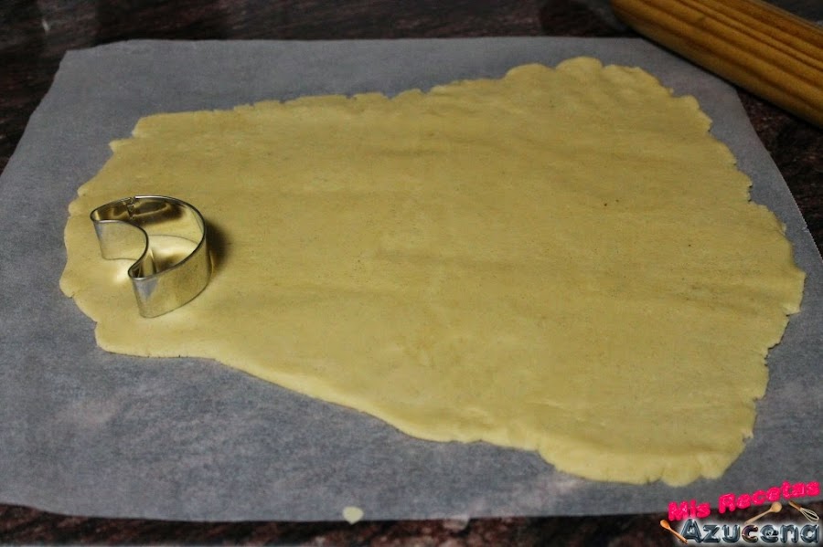 Ahora con ayuda de un molde en forma de media luna iremos sacando galletas.