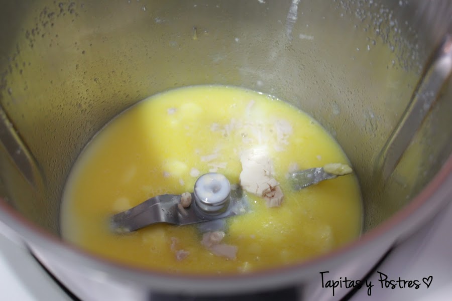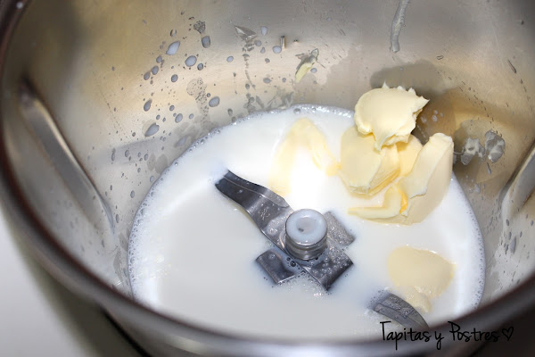 Poner en el vaso la leche, la mantequilla y el azúcar y programar 2 minuto a temperatura 37 grados, velocidad 2. Añadir la levadura desmenuzada y mezclar 10 segundos a velocidad 3.