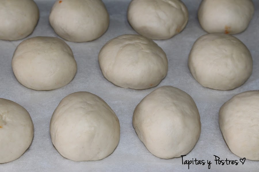Ahora los amasamos con las manos para redondearlos. Dejamos en una bandeja separados entres si y tapados un rato más para que repose la masa y crezca otra vez. Los pintamos con cuidado con huevo batido y le ponemos sésamo por encima (opcional). ¡Al horno!