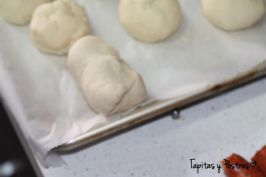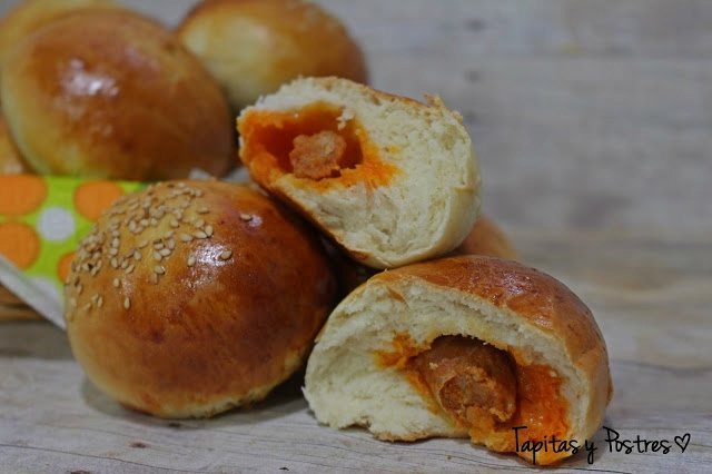 Hace unos días se me ocurrió prepararle dos de las tres cosas. el alioli y los bollitos de chorizo. pero con una variación, en lugar de hacerlos con masa de pan, los he preparado con una masa dulce,como la de las mediasnoches.