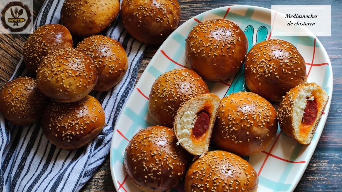 Si tienes que celebrar un cumple en casa, o te vas de picnic, o te apetece darte un capricho rico, no dejes pasar estas medianoches de chistorra. Con un contraste dulce/salado espectacular, no pudes parar de robar bollitos! Los he descubierto gracias al reto Asaltablogs, que en este mes hemos tenido una asaltada de lujo. De aquellos blogs que no puedes parar de mirar (y apuntar) recetas. De hecho Maryjose, del blog Tapitas y postres, es la culpable de que mi libreta de pendientes haya aumentado considerablemente. Volveré a atacar tu cocina Maryjose, me ha encantado!!!