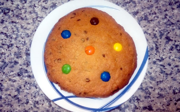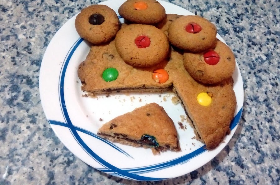 La receta era de una mega cookie rellena de dulce de leche, y la rellené de nocilla,