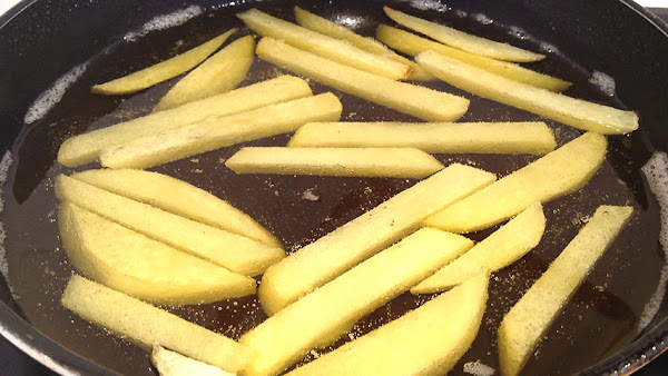La "segunda" fritura de las patatas es con el fuego al máximo.