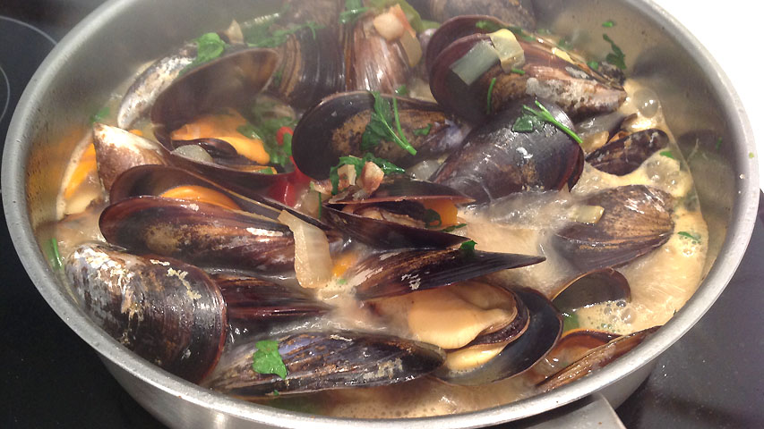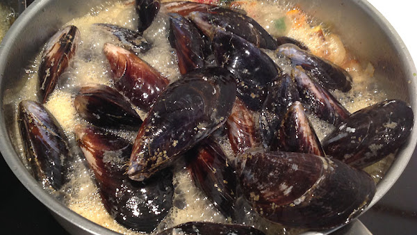 Aquí os dejo con algunas fotos de la preparación de estos sencillos mejillones:
