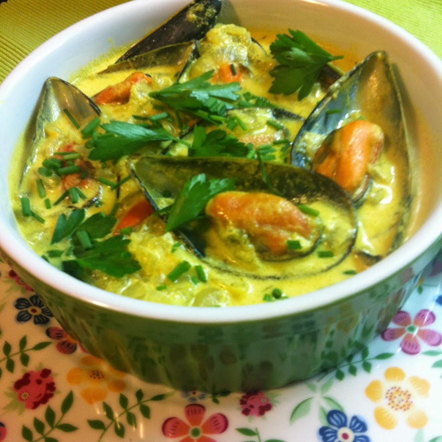 Anoche los preparé para cenar, descorchamos una botella de vino blanco muy frío de Valdeorras y disfrutamos del contundente sabor a mar y del picantillo aromático del curry.