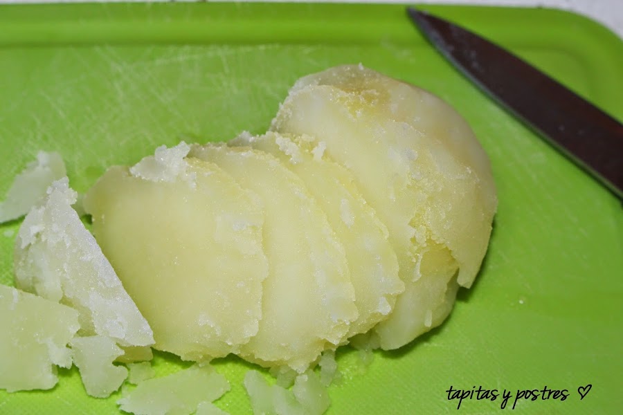 Cortamos las patatas en rodajas.