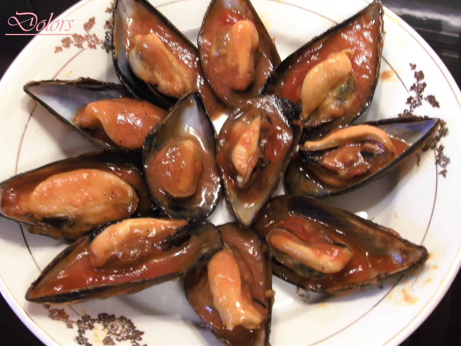 Abrir los mejillones al vapor, colar el jugo, reservar y quitar una de las valvas.