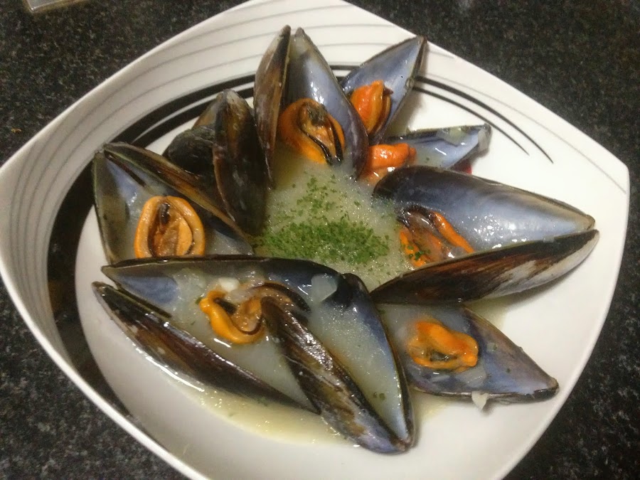 1º - Primero limpiamos bien los mejillones , quitándoles todas las impurezas y barbillas con a ayuda de un cuchillo . ( También podemos emplear estropajo ) .