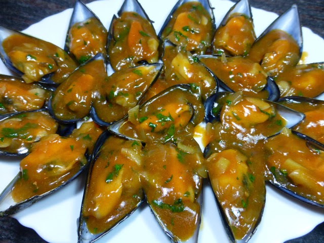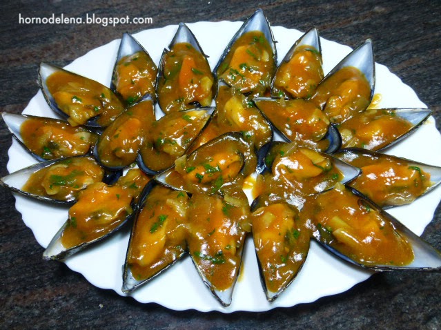 Ponemos el agua con las hojas de laurel al fuego y cuando hierva añadimos los mejillones, en unos minutos se abrirán. Reservamos y guardamos el caldo.