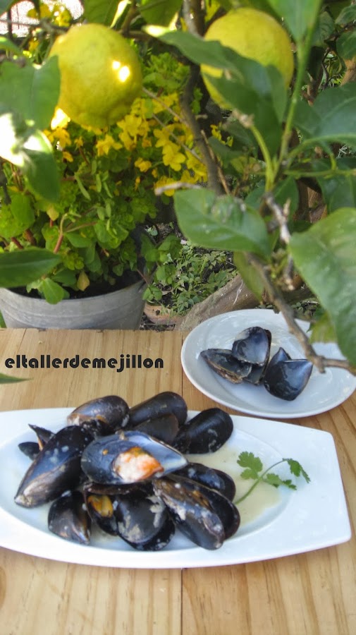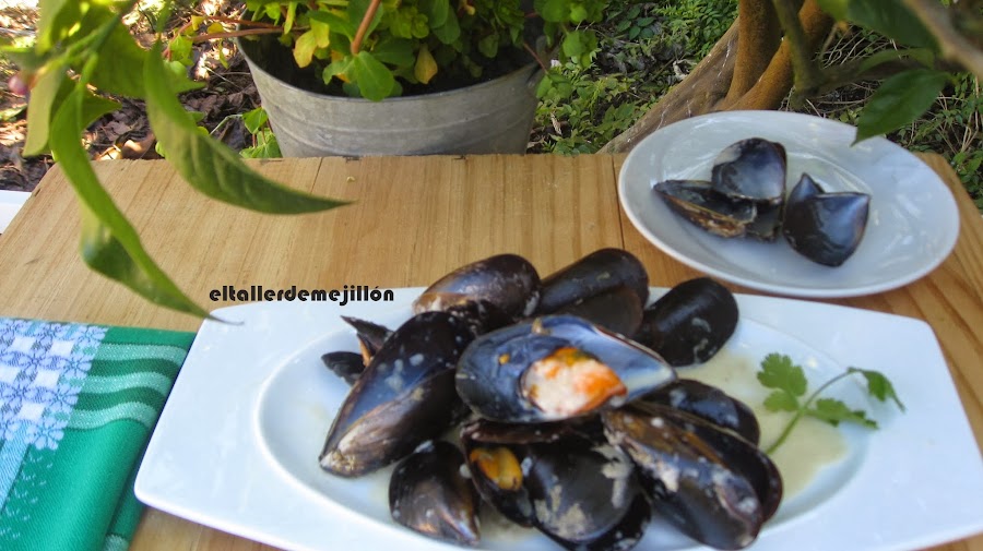 En esta ocasión he seleccionado los mejillones más pequeños, los he limpiado y los ponemos en una olla con un chorro de agua, tapamos y dejamos cocer tres minutos. Esperamos a que se abran y retiramos.