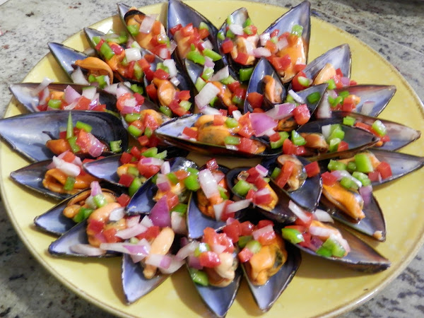 Quita una de las valvas de los mejillones deja la carne en la otra.
