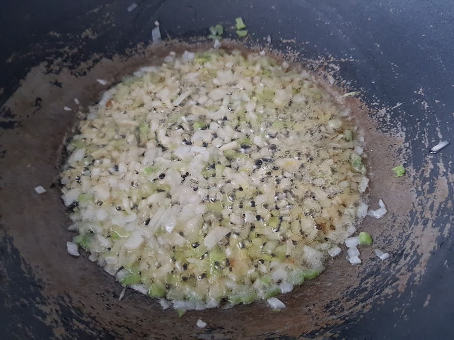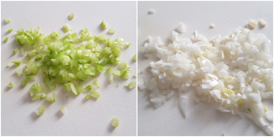 1. - Comenzamos picando muy fino el apio y la cebolla.