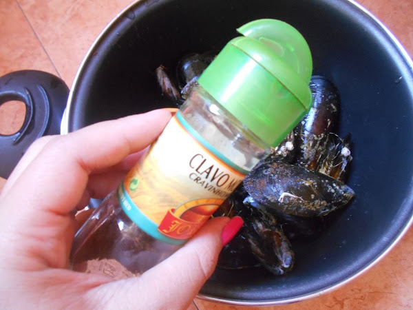 Ahora si vamos a por la receta. Lo primero que haremos es limpiar muy bien los mejillones, retirandoles todas las "barbas". Yo como no puedo ni tocarlos por la alergia, me aprovecho de la ayuda de mi madre jeje.