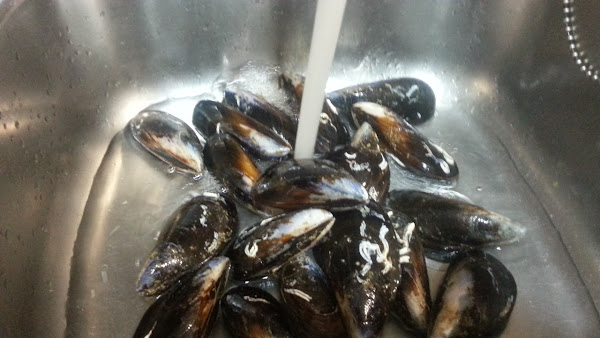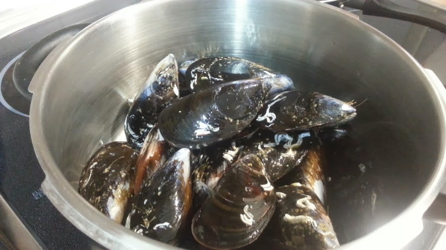 ahi me teneis con el maquina del pescadero en el momento de la limpieza de los mejillones