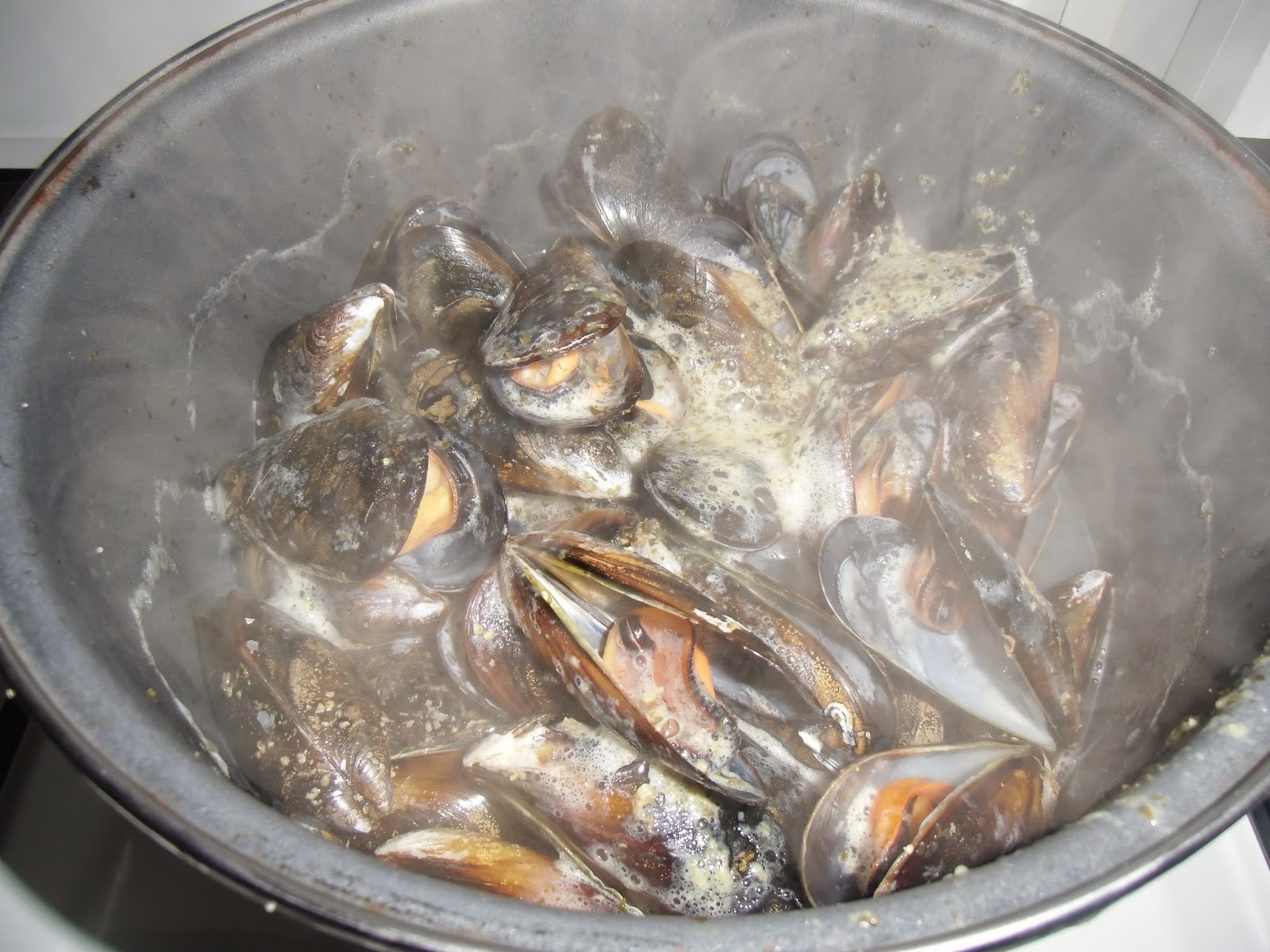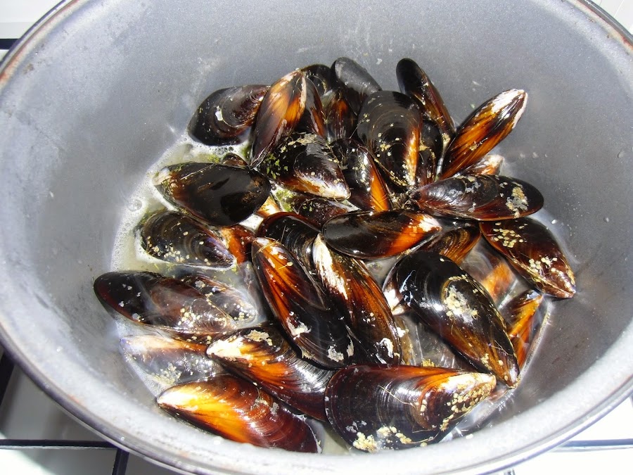 Cuando empiece a hervir incorporamos los mejillones y tapamos la olla unos 5 minutos hasta que se abran