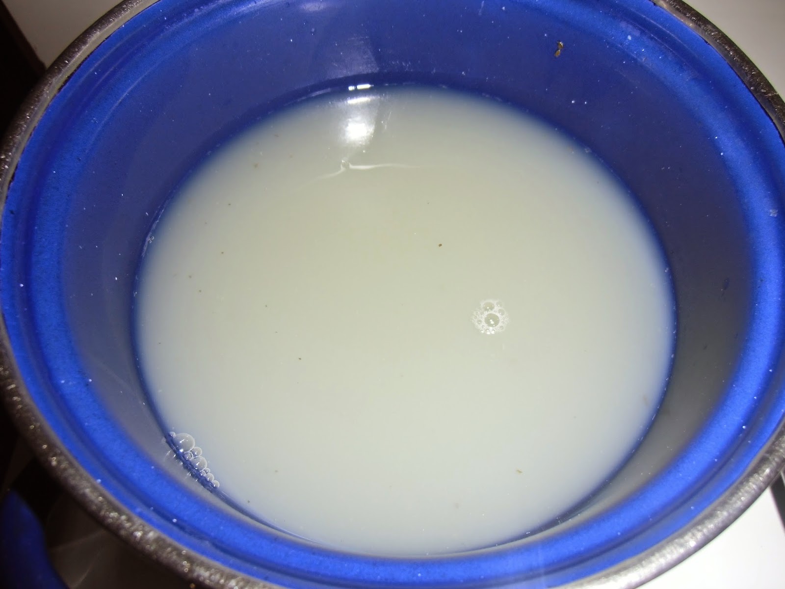 En una olla al fuego echamos un vaso de vino blanco, el zumo de los limones, una hoja de laurel, 10 ó 15 granos de pimienta, un poco de sal y el perejil picado.