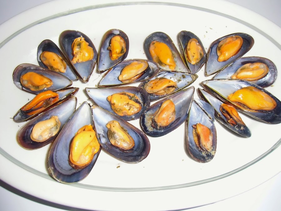 Retiramos y desechamos una de las cascaras de cada mejillón, la que está vacía claro.