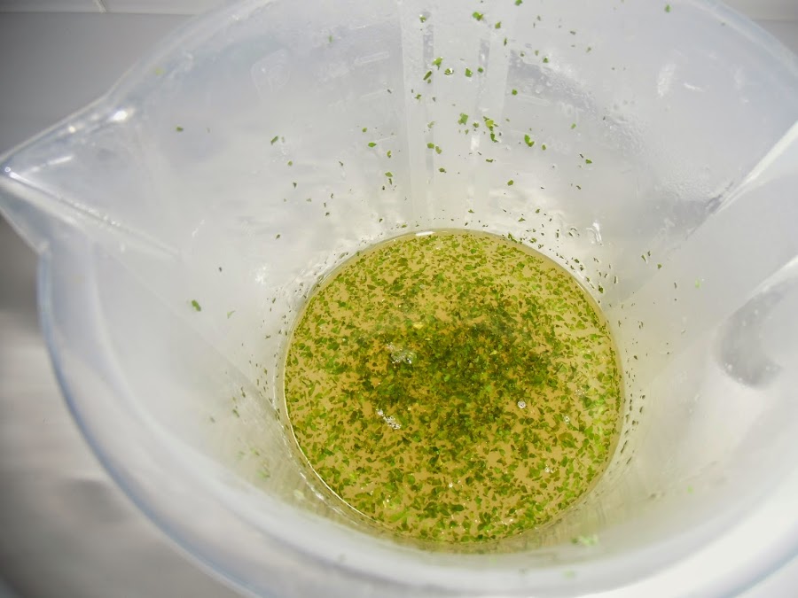 Le añadimos un chorro de aceite de oliva, perejil picado y un poco de sal, batimos bien y reservamos