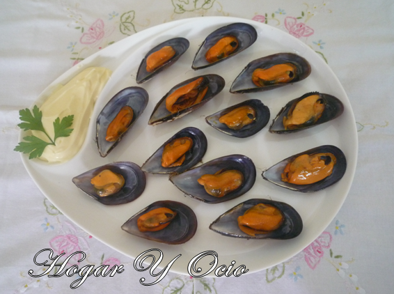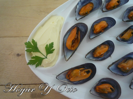 4. Servimos el plato, poniendo en la mesa unas rodajas de limón y/o una mayonesa, cada comensal decidirá si quiere o no aliñar los mejillones. En esta ocasión presenté los mejillones en su propia concha y les quité las barbas para que resulte más sencillo comerlos. Buen provecho!!!