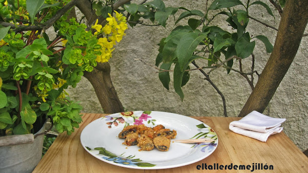 Vamos metiendo cada mejillón en el aceite muy caliente, esperamos a que se doren y retiramos.