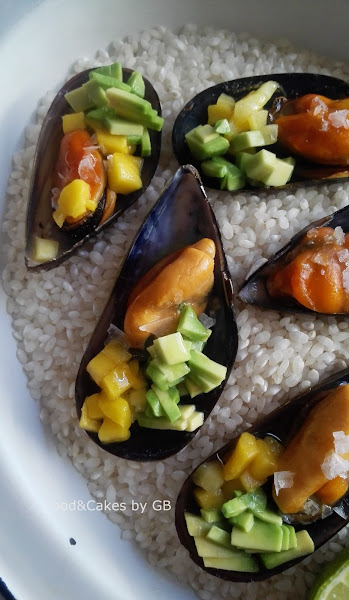 1- Abrimos la bolsa de mejillones y con su jugo los pondremos en una cazuelita baja. Pondremos a fuego suave y dejaremos 5 minutos. Escurriremos y les quitaremos una parte que deshecharemos.