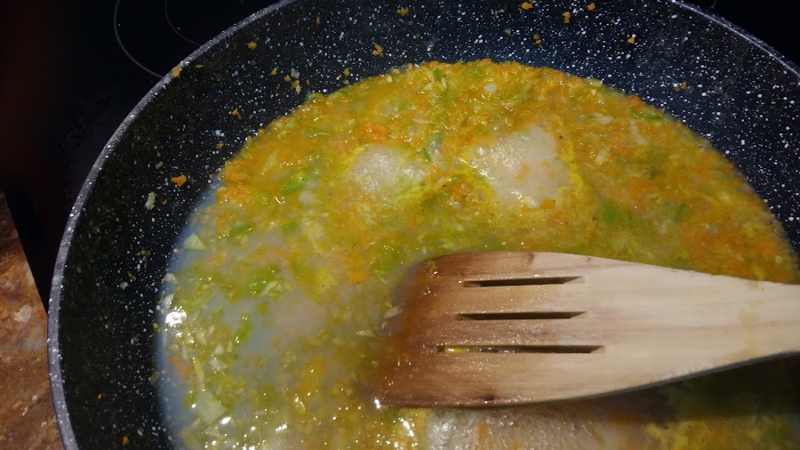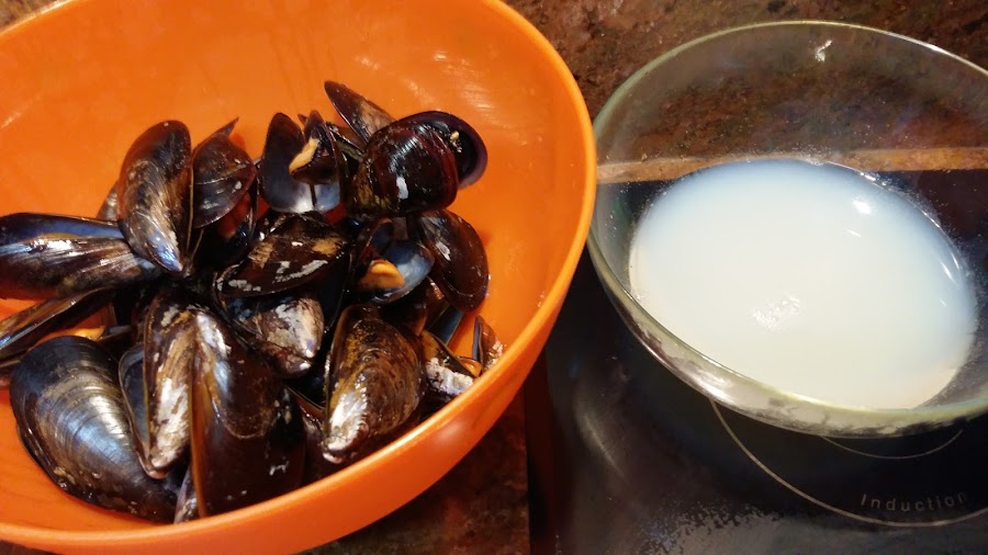 Incorporar los mejillones, salpimentar y cocer 3 minutos tapado.
