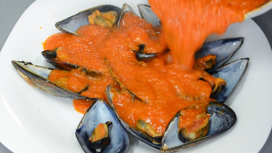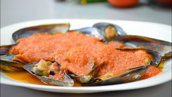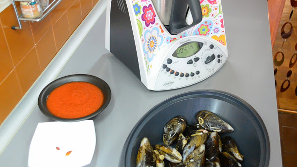 Pasado este tiempo ya están los mejillones cocidos al vapor y la salsa lista para servir.