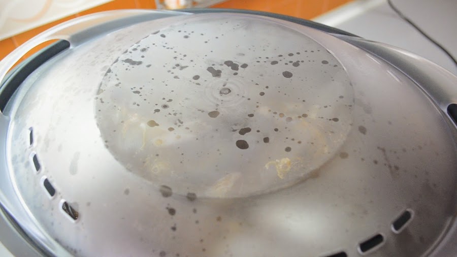 Pon los mejillones limpios en el recipiente para cocinar al vapor y sitúalo encima del vaso durante 15 min/Varomoa/vel 1.