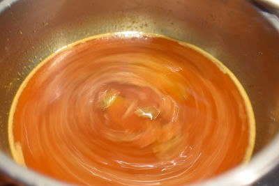 Remueve rápidamente para que no se queme y enseguida añade el vinagre (cuidado que puede saltar bastante).