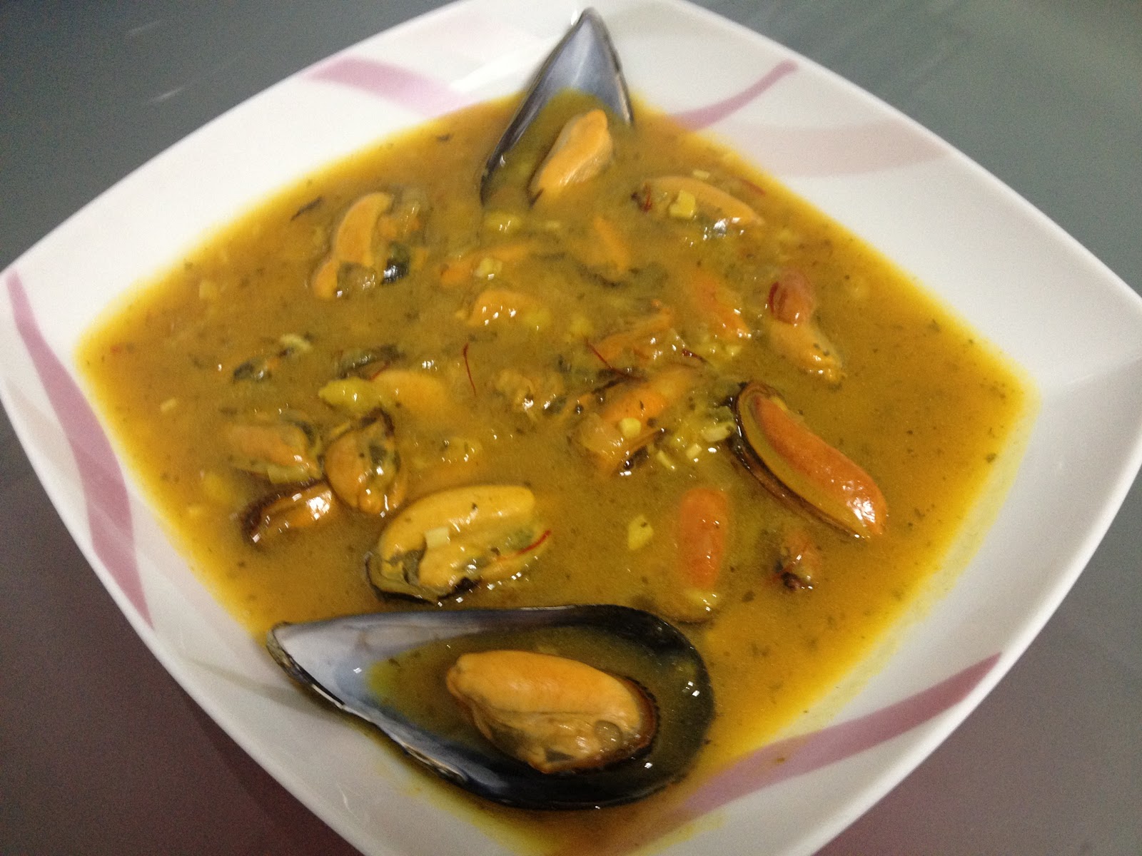 6º - Una vez haya espesado la salsa , retiramos del fuego y presentamos el plato en la mesa con los mejillones que conservamos con cáscara .