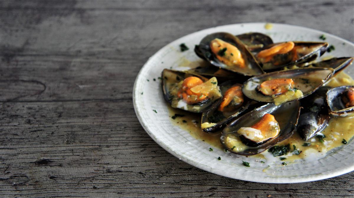 Limpiamos los mejillones y los ponemos en una sartén a fuego medio alto. Los tapamos y dejamos que se cocinen en su propio vapor hasta que estén abiertos.