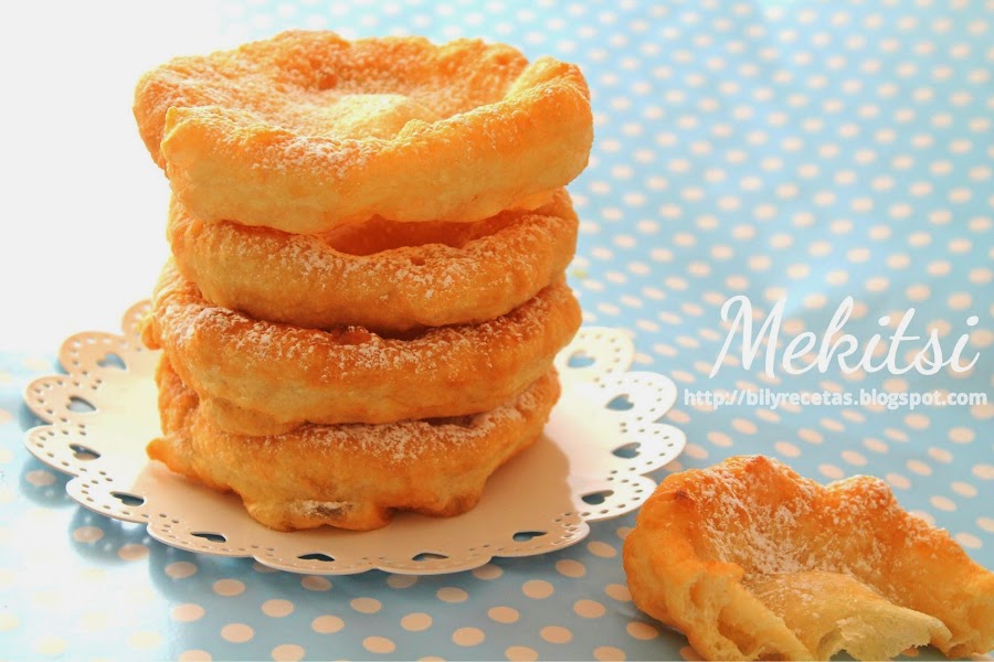 Setiembre! Vuelta al cole para muchos niños. Los míos este año se inician uno en el colegio y otro en la guardería así que aparte de sentimental tendría que ser algo más original en cuanto a desayunos y meriendas. Bien, pues esta entrada viene junto a un nuevo reto del grupo "Qué rico mamá!". Nuestra anfitriona este mes es Maria del blog Sweet&Gifts y su idea ha sido *piezas de bollería casera realizadas con masa de pan. La verdad es que nada más leer la propuesta sabía lo que iba a preparar. Hay muchiiisimas recetas que podía usar pero esta tiene un enorme valor sentimental para mí. Es una cosa tan mía, tan de mi infancia y mis años escolares y por suerte también muy de mi casa ya que mis niños adoran estas tortitas fritas llamadas Mekitsi.