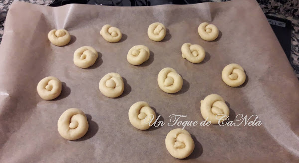 Formar los melindres, poner en bandeja de horno con papel vegetal.