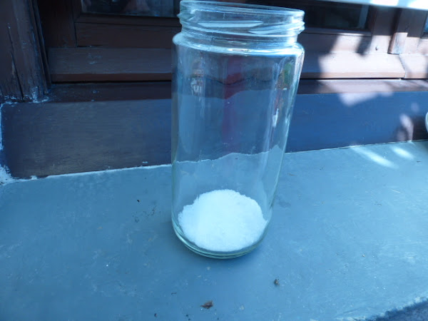 Ponemos en cada tarros de cristal una cuchara de azúcar, esta azúcar es la que hará el almibar.