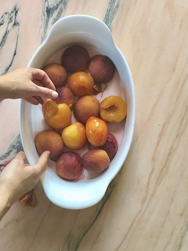 Cuando los melocotones estén templados quitamos las pieles. Preparamos los botes esterilizados si vamos a dejarlos mucho tiempo y normales si lo vamos a consumir en una semana.