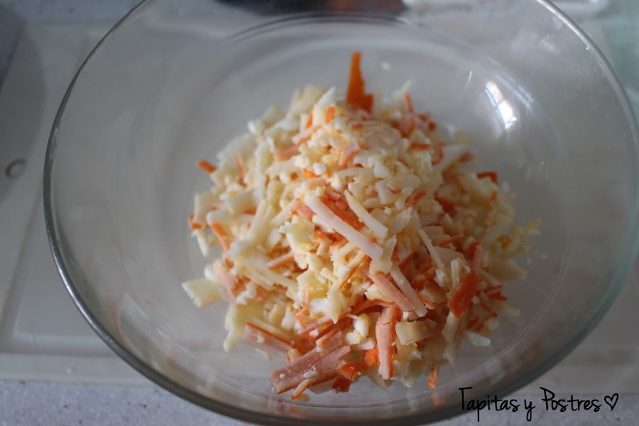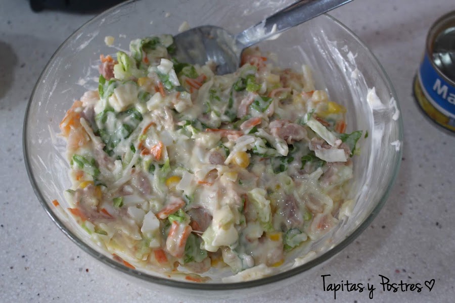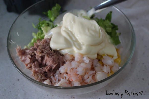 Añadimos la mayonesa y revolvemos muy bien para que se mezcle todo. Dejamos en la nevera hasta el momento de servir.