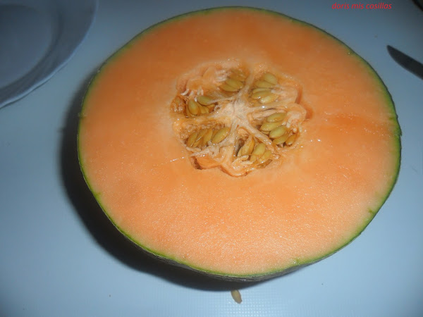Cortar por el centro el melón y retiramos con una cucharilla todas las pepitas.