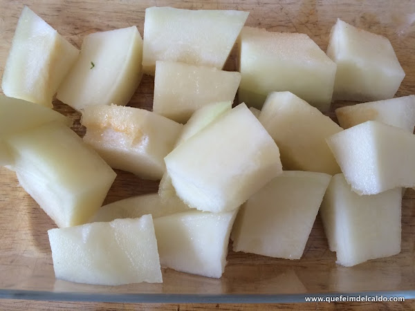 Se quita la corteza del melón.