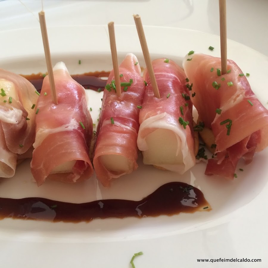 Se envuleve el trozo del melón en una loncha de jamón serrano.