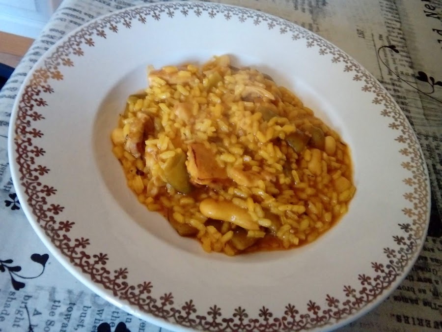 Este arroz es otro de los favoritos en casa. Se elabora igual que la paella valenciana pero en cazuela y dejando el arroz meloso, a medio camino entre seco y caldoso.