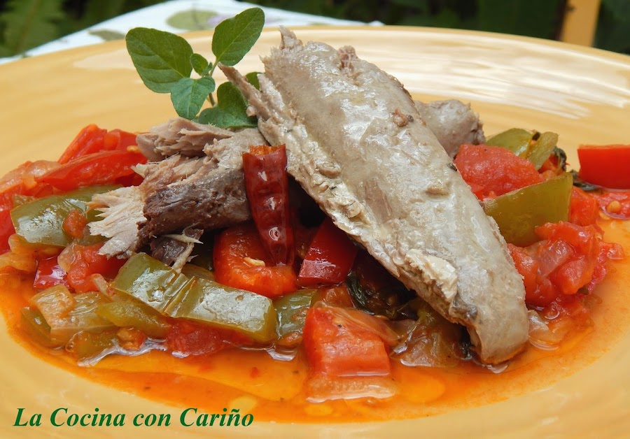 Dejamos templar. En el plato colocamos la base de pimientada y encima ponemos la melva y rociamos con un poco del aceite de la maceración. Listo y delicioso.