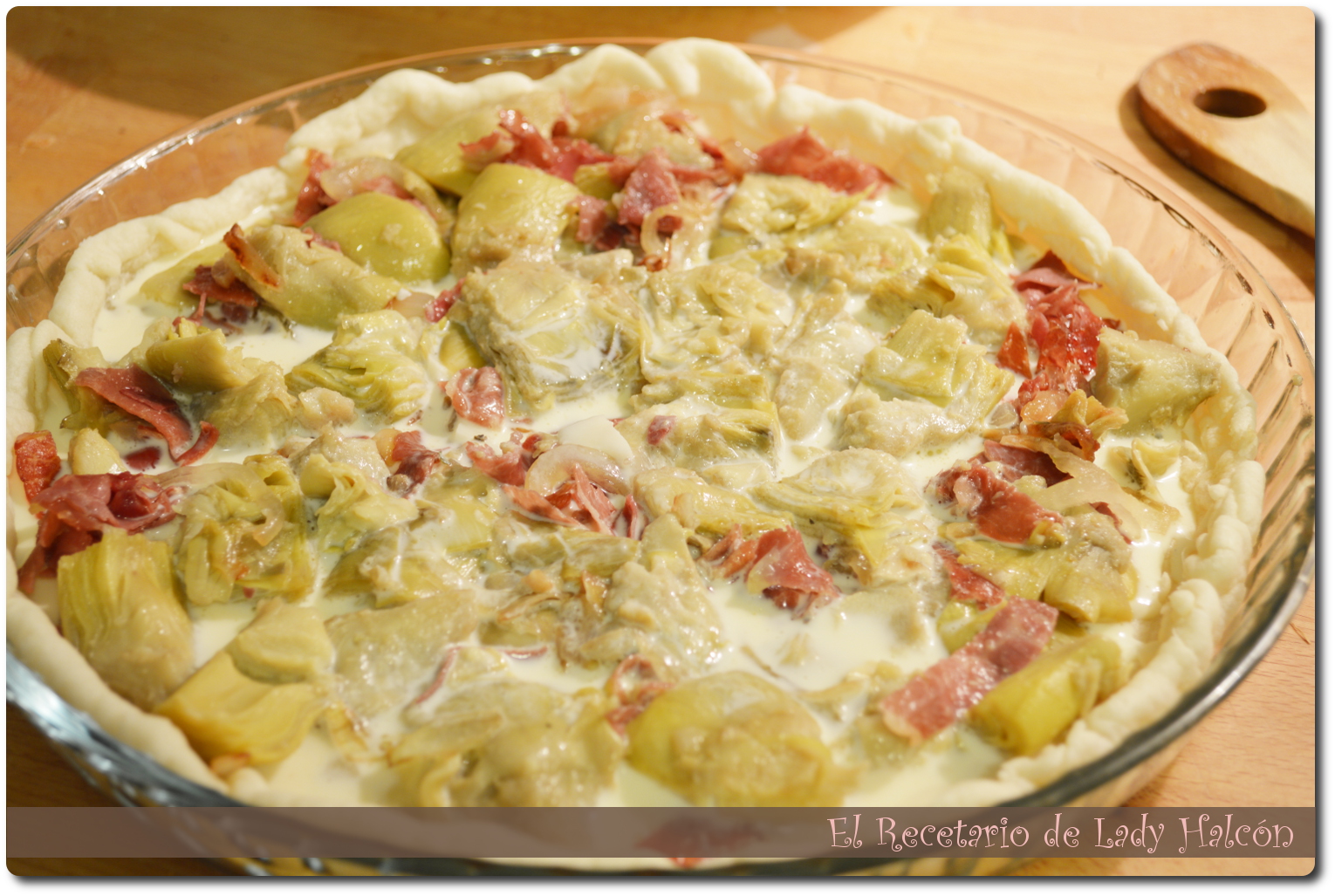 Y sobre la quiche podría deciros que es una de las mejores que hemos preparado en casa. Eliminé una parte de nata (crema de leche) y la sustituí por leche semidesnatada, lo que le quitó algo de pesadez pero no de sabor. Y en un intento por hacerla un poco más light (jaja) usé la combinación de alcachofas y jamón que siempre está rica y es ligerita. Vamos, que casi casi podríamos decir que es una quiche estilo dieta... ejem... bueno, o para la dieta de las vacaciones ;).