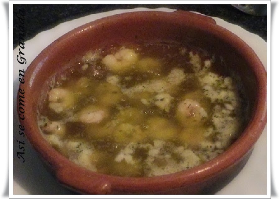 Gambas al pil pil, Elvira nos trae desde su blog este plato que también sirve para la dieta vegetariana, que casualidad parece que estuviera escogido… y yo poniendo jamón a tope….