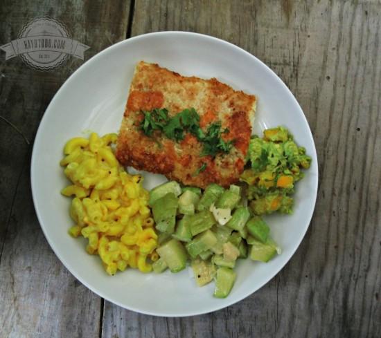 Derrite la mantequilla, sofríe el ajo y agrega los chayotes. Deja a fuego medio hasta que estén medio cocidos, sazona. Agrega la crema y deja hervir unos 5 o 6 minutos, rectifica sazón. Guacamole: Aplasta con un tenedor la pulpa del aguacate, agrega el mango, el jugo de limón y un poco de sal. Opcional si deseas agregar cilantro picado.